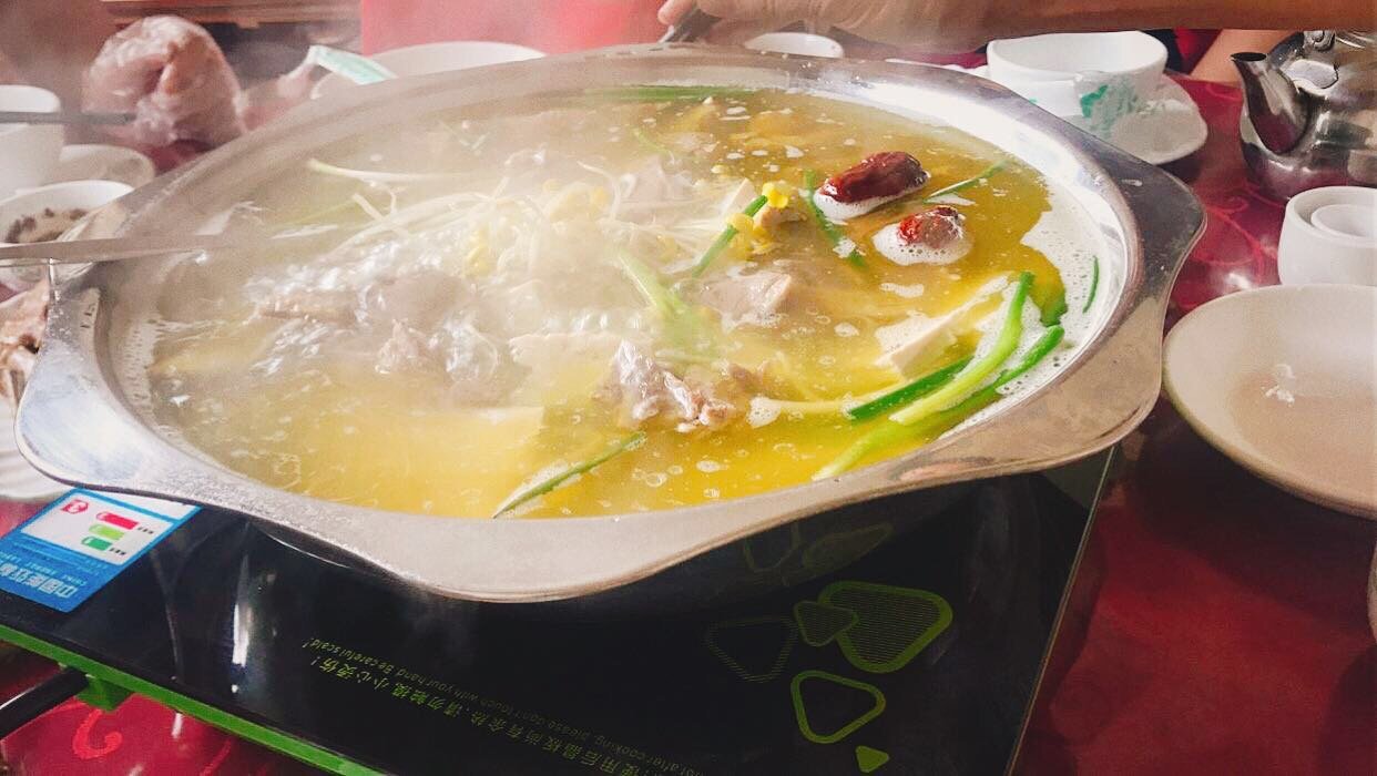5.平坝灰鹅火锅:平坝灰鹅很早就有名,是家养六畜之一。灰鹅火锅汤里无吊汤的豆芽,汤面上浮着少许的枸杞、竹荪、葱段。汤色微黄,浑而不浊,鹅肉近似牛肉红。