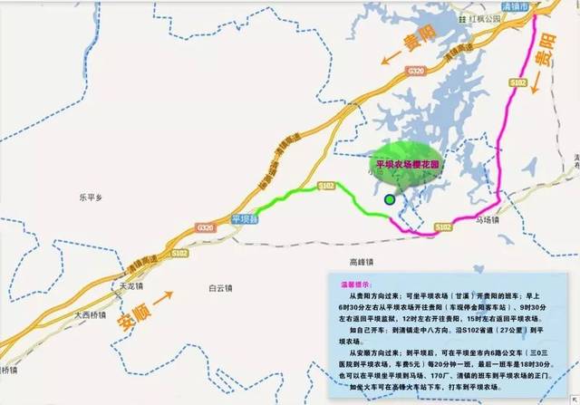 3)景区直通车:2021年3月6日起,贵阳黔爽巴士开通贵阳各地到贵安新区平坝农场樱花园的直通巴士,在黔爽巴士微信小程序上提前预约购票即可,票价49元起。