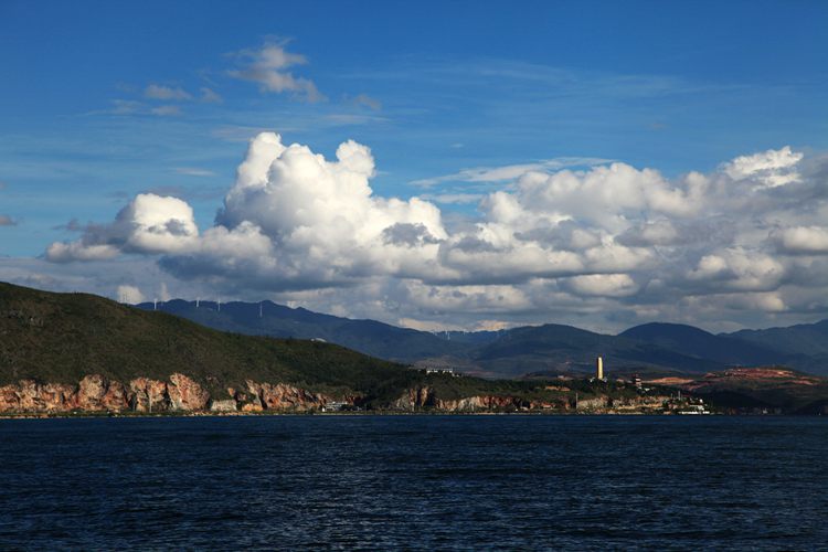 游船离岸驶向最美的南诏风情岛,站在船上远眺,沧山与洱海遥遥相望,沧山如屏叠翠,洱海如镜如琴,如果把沧山比喻为魁悟豪放的男子,洱海则是柔情似水的女子。这一刚一柔相依相偎,演释着风花雪月的浪漫故事。大自然就是这样的神奇,天造地设,完美无缺,让人叹为观止。