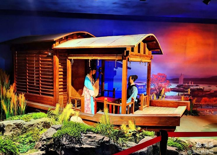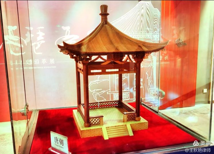 在景区内的展厅里,看到了唐代琵琶亭的模型。感觉唐代风格的琵琶亭很好看:单层的造型看起来简约大气,翘角飞檐又透着灵动飘逸。与唐代模型相比,复建的琵琶亭倒显得有些笨拙粗糙了。