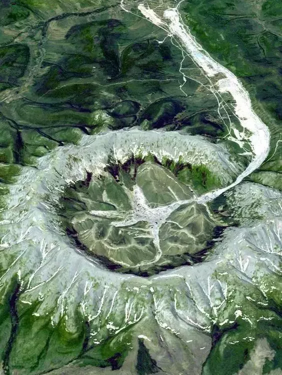 11、俄罗斯西伯利亚东部的昆德尔山丘。虽然你看着它像一个巨大的陨石坑,但实际上它并不是。该地特殊岩层被称为alkaline-ultrabasic断层,布满罕见矿物,2015年开采出4吨铂金。