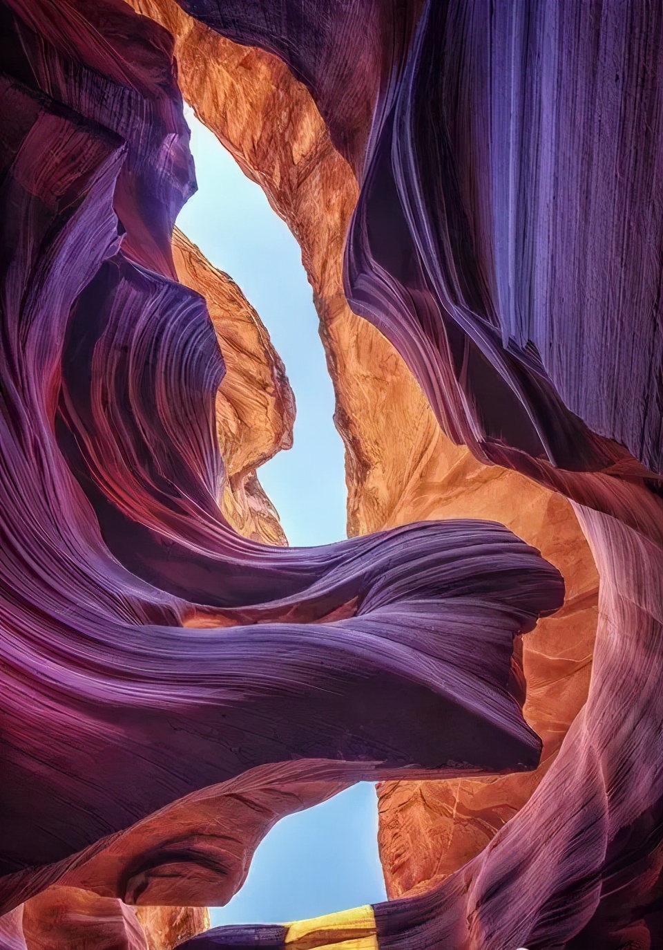 16、美国亚利桑纳州的羚羊峡谷。最初由于山洪暴发,然后可能是由于地表的过程通过纳瓦霍砂岩的侵蚀形成的。
