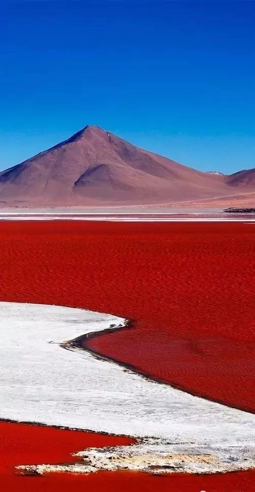 24、科罗拉达湖是在玻利维亚的一座盐湖,它的红色是由藻类的色素形成的。