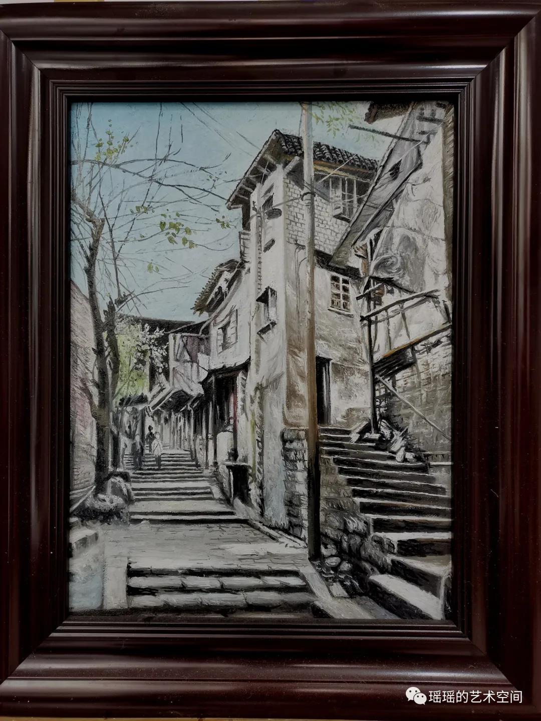 我想,从现在起,有时间就去把重庆的老城的那些动人的景点描绘岀来,让其过往的烟云在油画中飘洒。或许对一个爱画画的人可谓是一种内心的亲近。美好总喜欢在记忆里,美好更喜欢在画笔中,并久久地留在画布上。