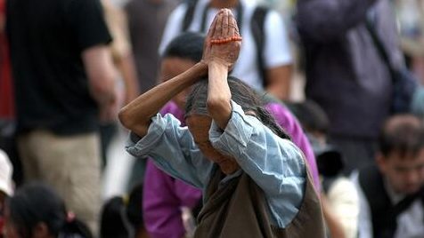 还有一个更让我感到震撼的是那些虔诚的朝拜者 。我们的车子从林芝返回拉萨的途中,透过车窗,看到路旁偶有三两朝拜的信徒。在西藏地区称为磕长头,就是五体投地,双膝、掌心额头、全身伏地,三步一扣,口念六字大明咒: 唵(ōng)嘛(ma)呢(nī)叭(bēi)咪(mēi )吽(hōng)。