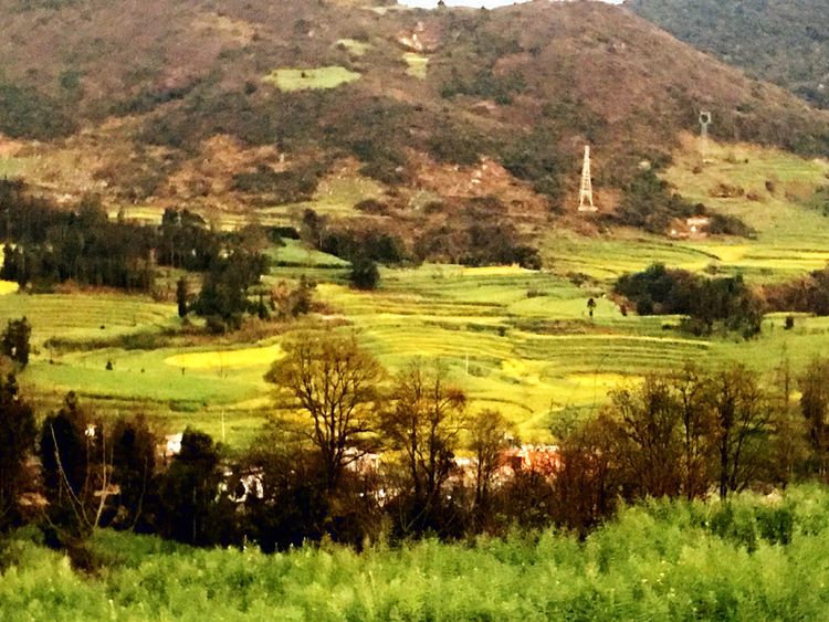下山的路不好走,稍有不慎,一脚下去,后果不堪设想。回到农家乐把照片放大,我才看出螺丝田的味道。原来,盘山道是一圈圈的梯田,随着山势,就好像一颗颗螺丝缠绕在山上,油菜花随地形种植,与冬小麦交织在一起。站在高处俯瞰,一圈圈恰如螺丝盘旋,层次更加丰富。