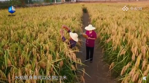 “水稻长得有高粱那么高,穗子像扫把那么长,颗粒像花生那么大,我和助手坐在稻穗下乘凉。”