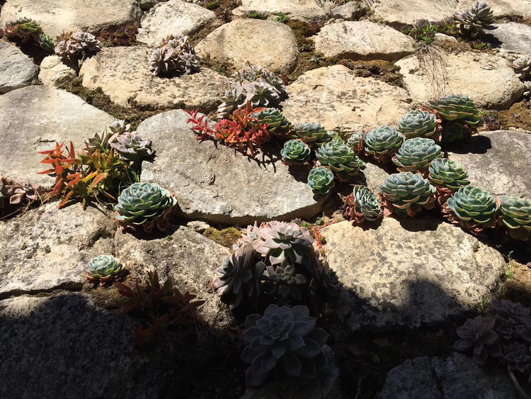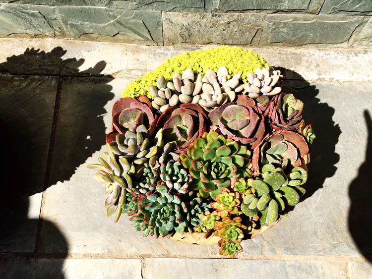 这段坡路很长,我们走的慢,到了寂照庵已气喘吁吁了。怀着虔诚的心,迈进寂照庵大门,仿佛走进了大花园里。这里到处都是鲜花,尤其多肉植物居多。盆栽精巧,布局考究,独具匠心。屋里屋外、台阶走廓、房梁屋檐都挂满了肉肉。真真是一个文艺大花园,如果不是墙上南无阿弥陀佛大字的提醒,真以为自己在花园里呢。