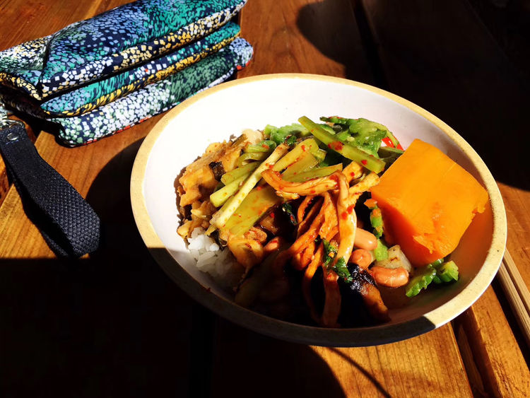 寂照庵始建于明初,后毁。据说是在云南都督唐继尧主持下重建的,现在庵门上“寂照庵”三字,就是出自他手。这日天气正好,阳光明媚,春风拂面。我们依次参观寺庙,然后坐在洒满阳光院子里赏花。游客越来越多,寺庙已人满为患。本清净的地方,有了嘈杂声。时已中午,我们吃了顿斋饭。大家有秩序的排队领饭,义工举着牌子告戒不许浪费。这里的斋饭很好吃,白米饭配素菜,色香味俱佳。