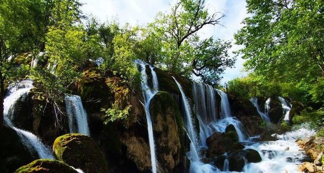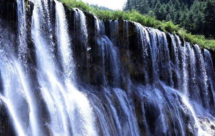 珍珠滩瀑布。一条木制栈道穿过水滩,水流被遍布河床的微小孔隙所阻,生出成千上万的水珠,阳光的照射下晶莹夺目,像是满坡滚动着晶莹的珍珠而得名。