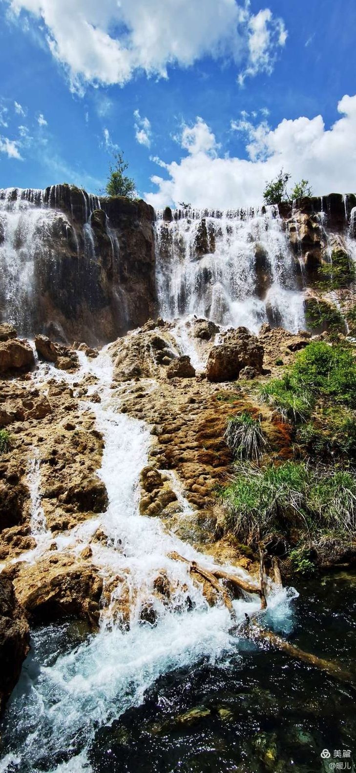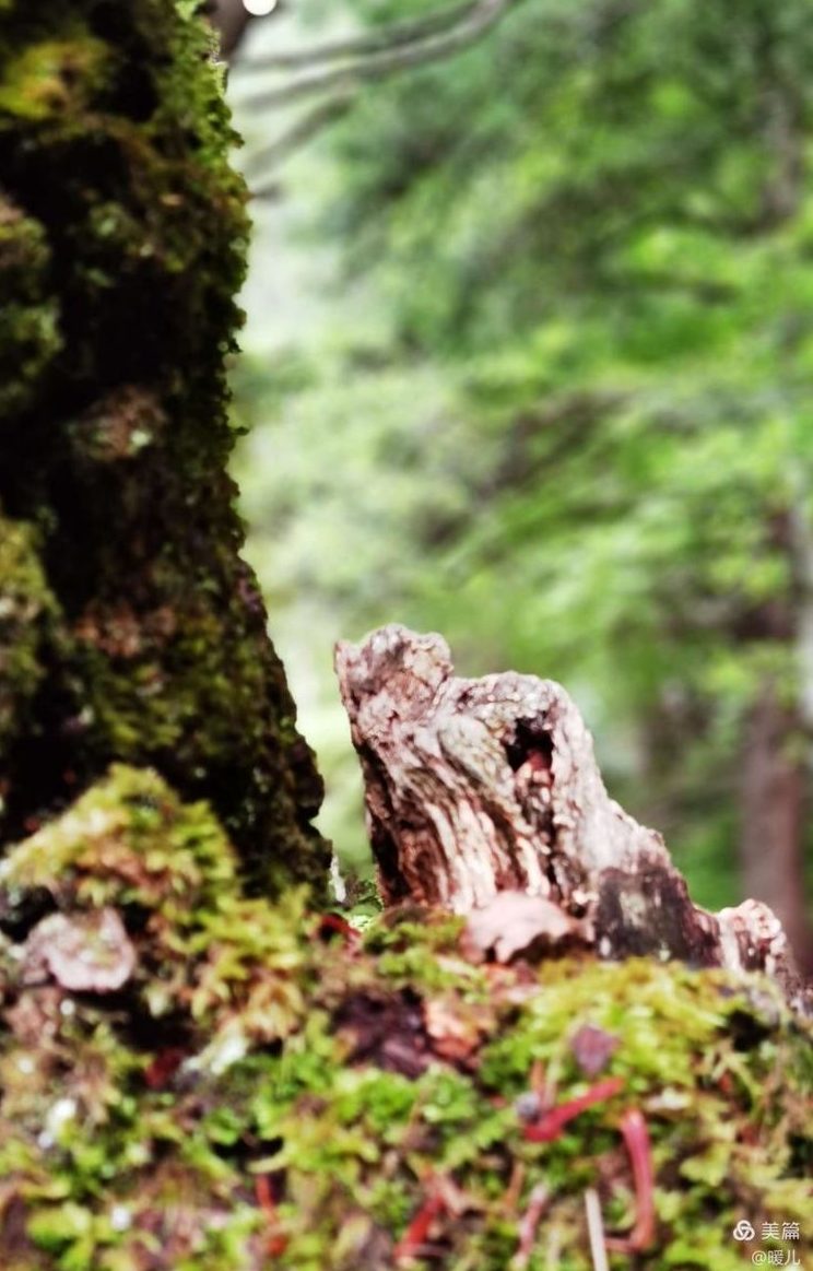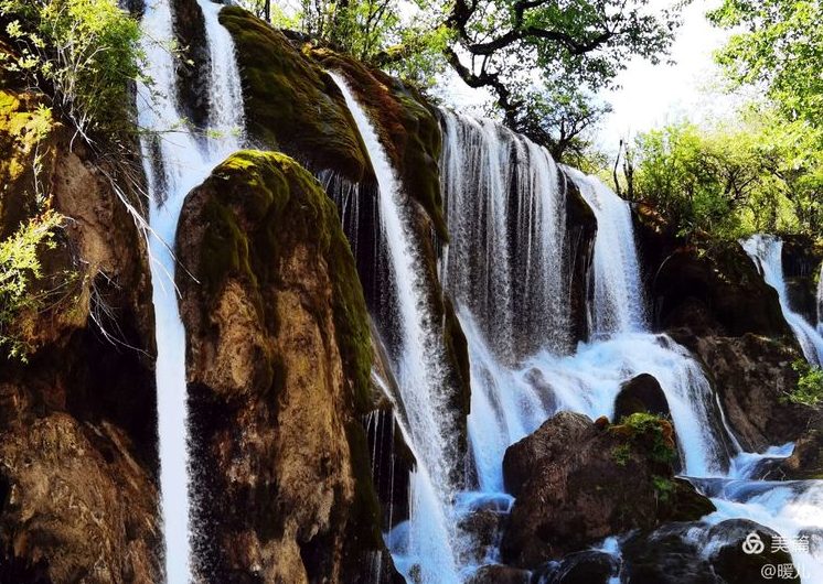 水欢快地从上游跳下来,穿过长在水中的水生木,水底铺着一层滑如丝绸的苔藓,有的明黄,有的脆绿,有的则是黑色,但都明晃晃,亮堂堂,一路欢腾着奔下崖底,势不可挡。