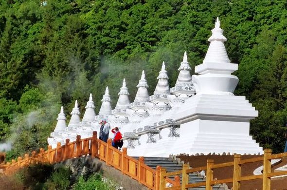五彩池。海拔3576米,是当今世界上规模最大、海拔最高的露天钙华彩池群。远看块块彩池宛如片片碧色玉盘,在阳光照射下,白、紫、蓝、绿,浓淡各异,色彩缤纷,极尽美丽娇艳。池坝形态各异,排列参差错落,层叠而上,恰似一幅“人间瑶池”的立体油画,天生一首“圣地仙境”的无言情诗。