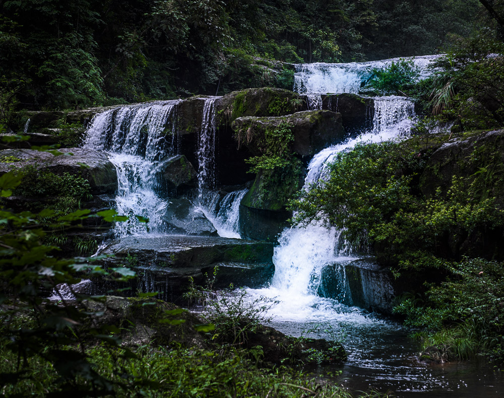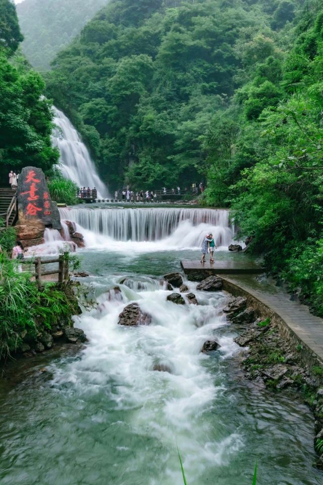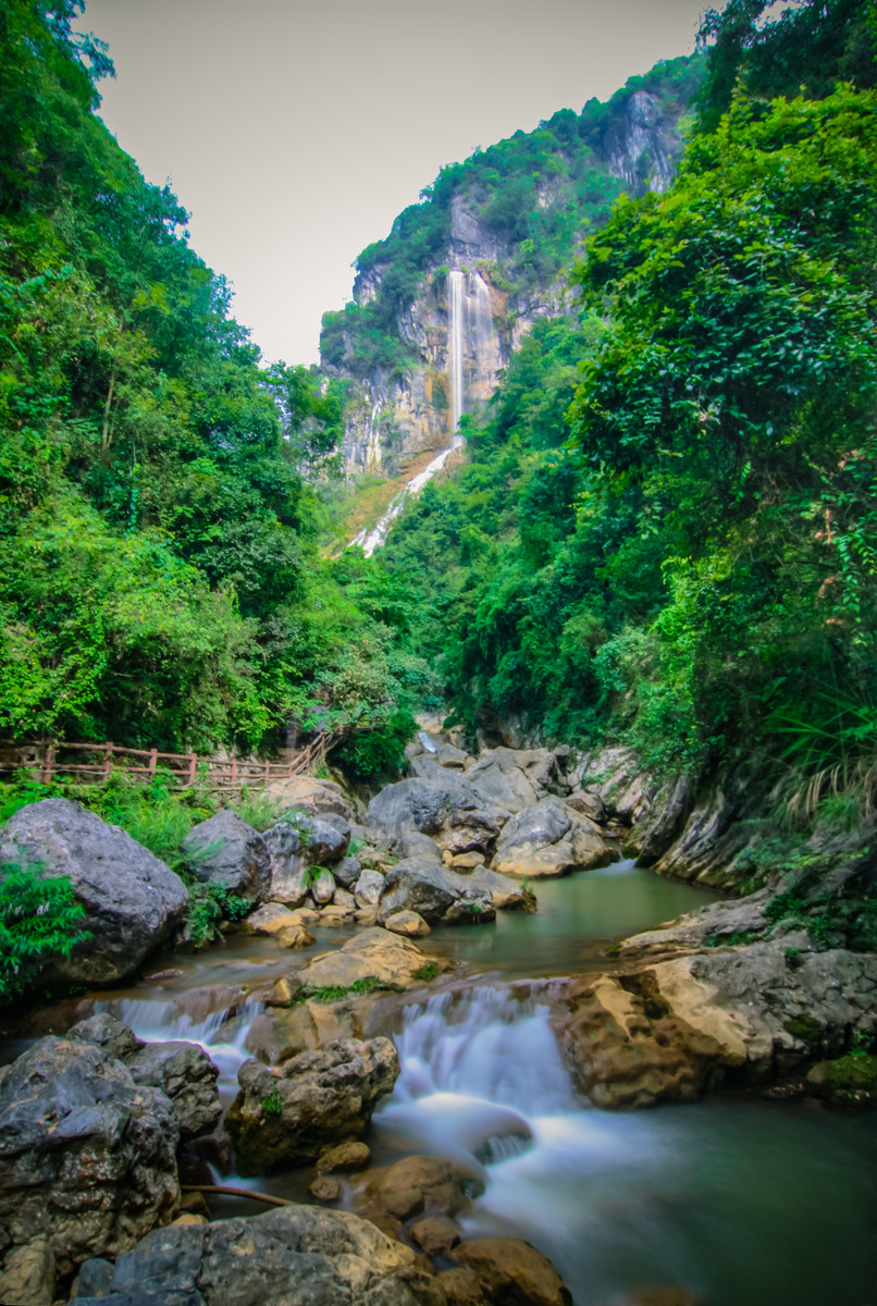峡谷景区由两条峡谷组成,沿着一米多宽的石板路在峡区内环绕前行,峡内林木葱郁,植被丰富,生态极好,有多种类型的瀑布,为峡谷增添了无限景色。