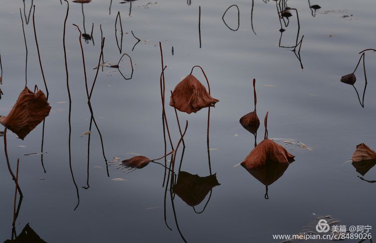残荷站在枯与荣,盛与衰的节点上,埋葬容颜,集聚力量,用各异的楔形文字,勾勒出了世上最美的檀色墨画。