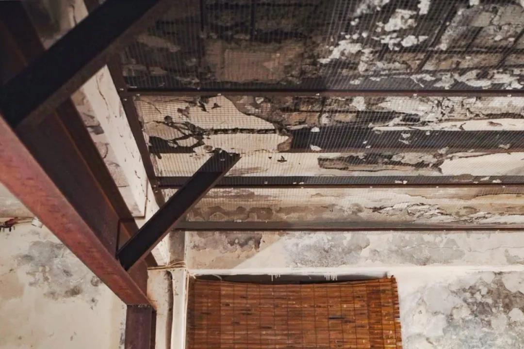 一楼的天花板水泥严重剥落,钢筋结构裸露,外层架设了铁网以免碎块砸下来。室内有一股很重的潮湿味,随意堆放的书籍杂志泛黄破损,几乎变成一间储藏室。