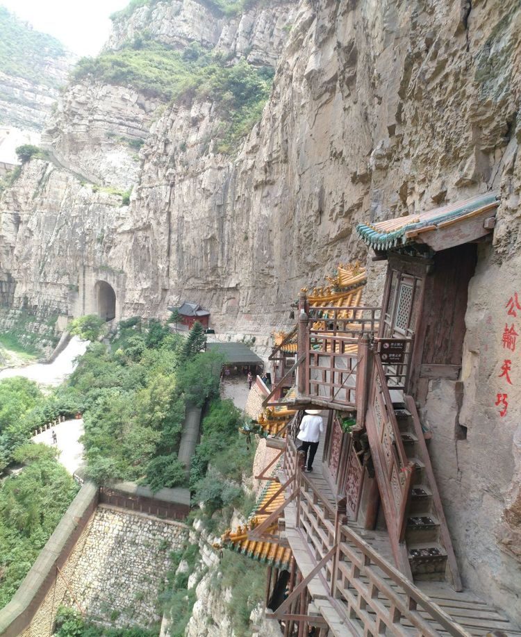 著名的悬空寺,更是充分体现了古人的聪明智慧。该寺是历代文人墨客向往之处,古代诗人形象的赞叹”飞阁丹崖上,白云几度封,蜃楼疑海上,鸟到没云中”。诗仙李白游览后,在岩壁上写下了”壮观”两个大字,徐霞客游历到此,称之为”天下巨观”。