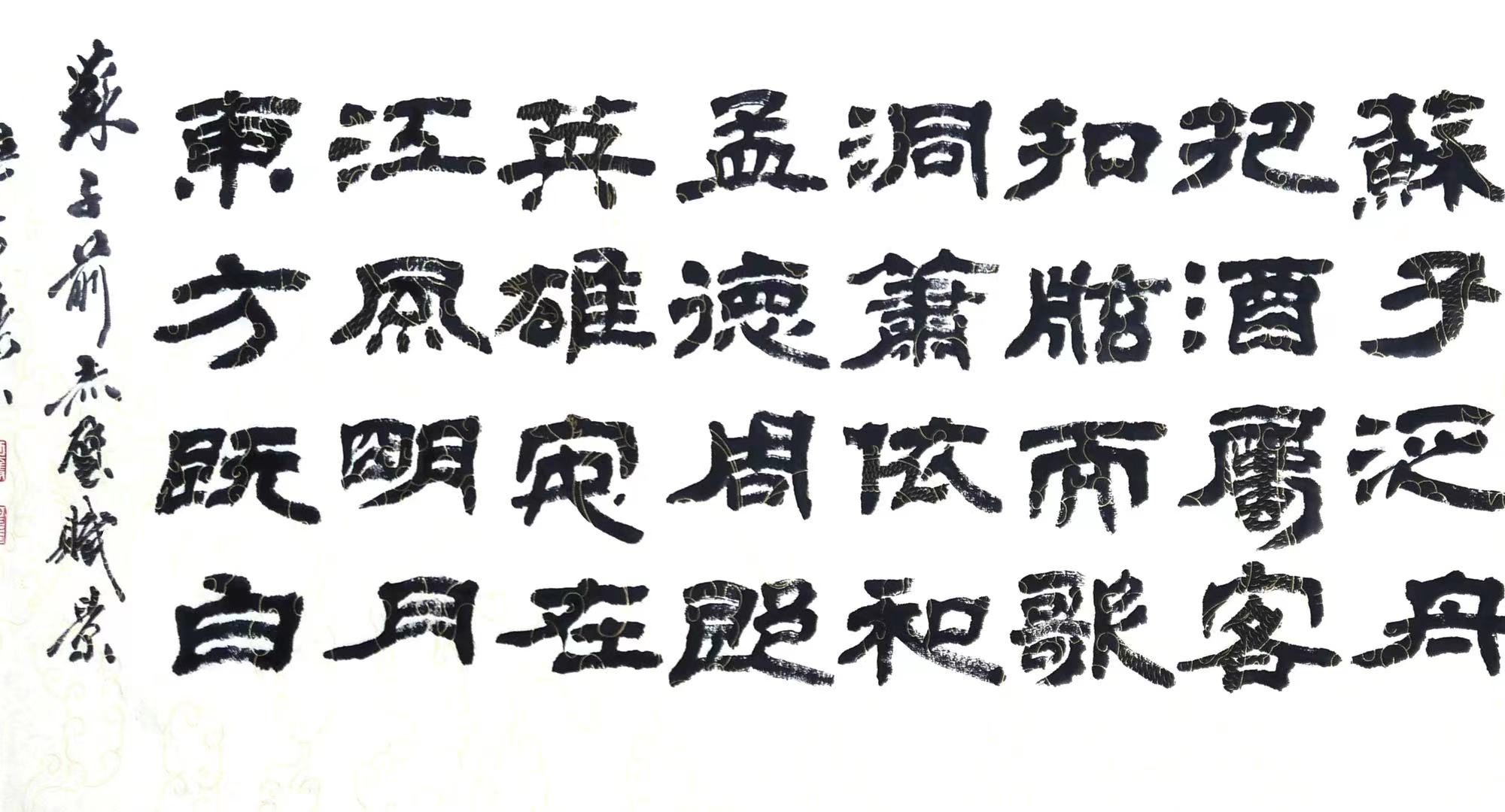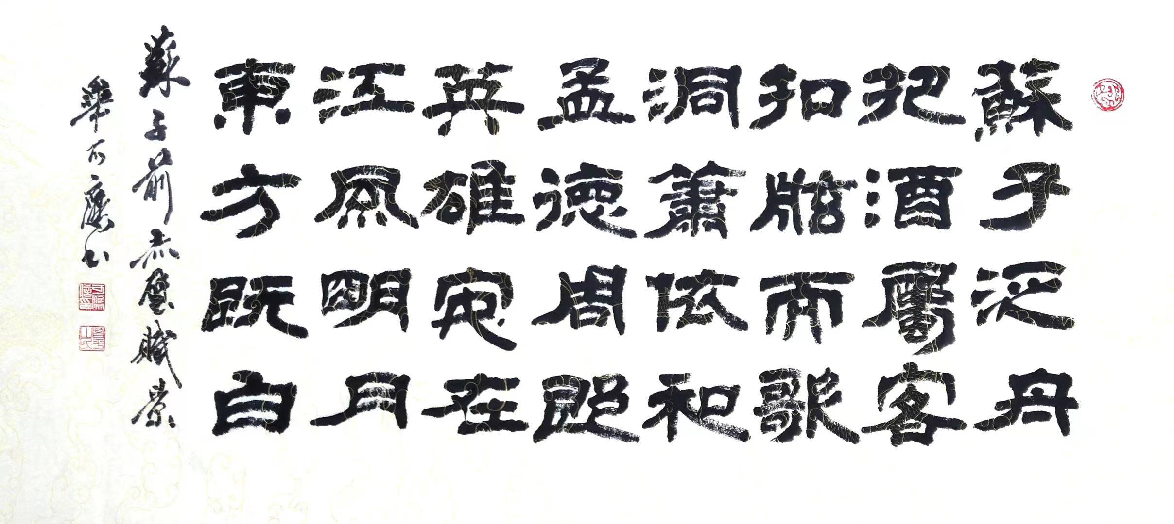 8月21早,斗胆不揣简陋,戏撰四言诗八句,道出是夜场景,并以古隶书之。