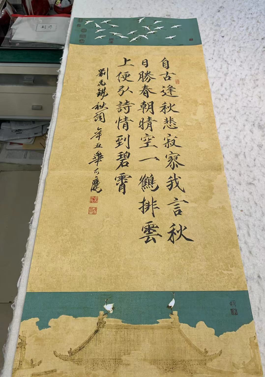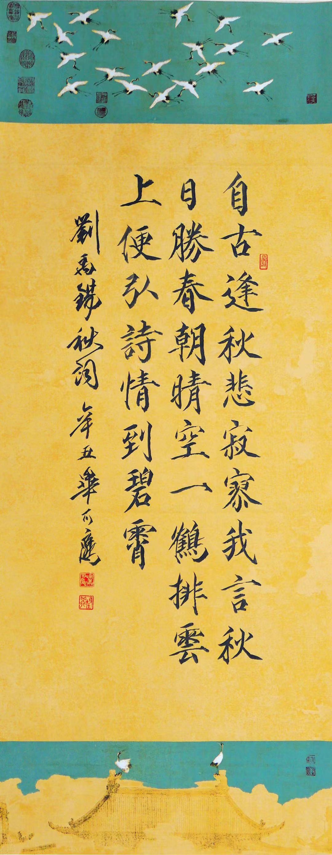 8月25日早,用宣和瑞鹤宣纸,书唐 . 刘禹锡名诗《秋词》,34×85。