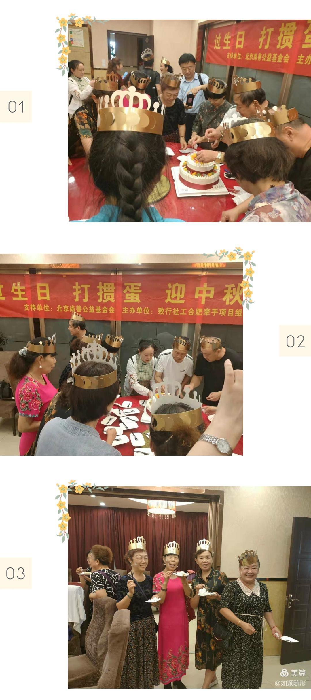 简单而热烈的生日仪式上,十几名寿星头戴生日帽,围在烛光闪闪的大蛋糕桌旁,家人们拍手欢唱着生日歌,祝福着寿星也祝福着自己,祈祷老有所依,未来安好。志愿者为每位家人分送着蛋糕,大家吃着唱着,笑着,眼睛里闪动着泪花,有的人兴奋的往寿星脸上抹着蛋糕,好姐妹们相拥留影温馨无比,此时此刻大家忘却了烦恼,放下了忧伤,尽情享受在这不是亲人胜似亲人的兄弟姐妹般的大家庭的温馨,心中充满着释怀与感恩……