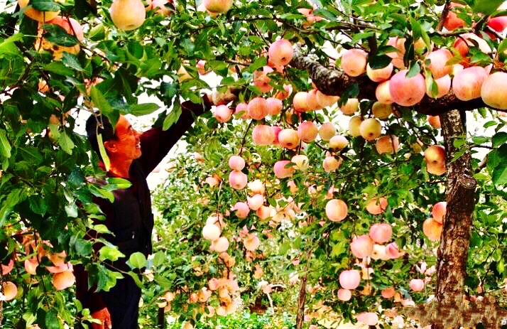 到了秋天,果园里硕果累累,那红艳艳的苹果,黄澄澄的梨子,紫茵茵的葡萄高挂枝头,馋的我们这些孩子直冒口水。我们盼着刮风下雨,那样果子会落一地。我们就能名正言顺进园拣果吃了。当果农摘完果实,就没人看管果园了,我们就会撒了欢的奔果园,从密匝匝的树叶中寻找漏下的果子。而到冬天农闲时,果农则要保养果树,给生病的果树治病,就象给人治病一样,小病小治,大病动手术。有一年,我们学校支农,我被分在了果业队,跟在果农后面学嫁接,给果树治病等活计。亲眼目睹了果农的辛苦。