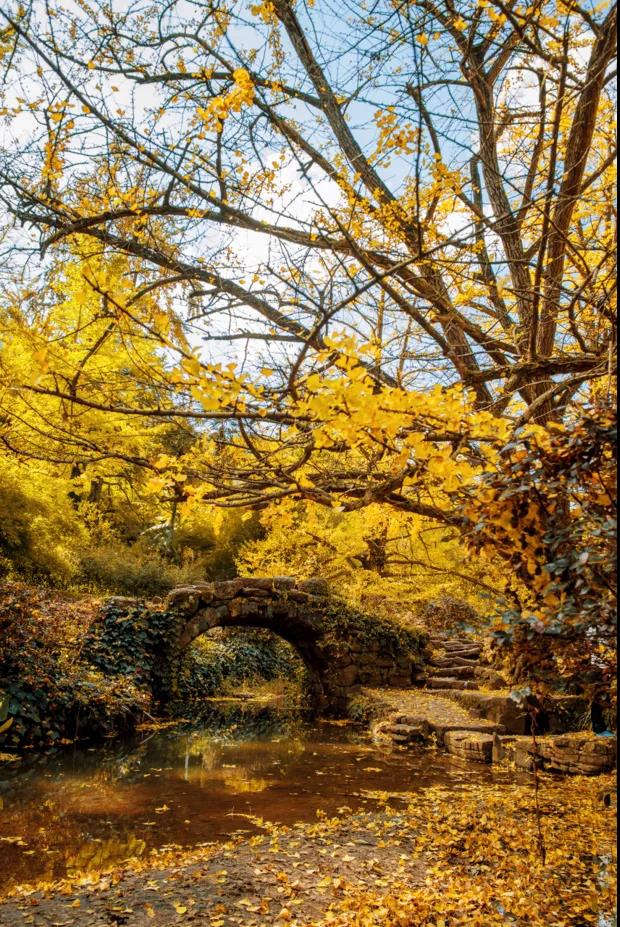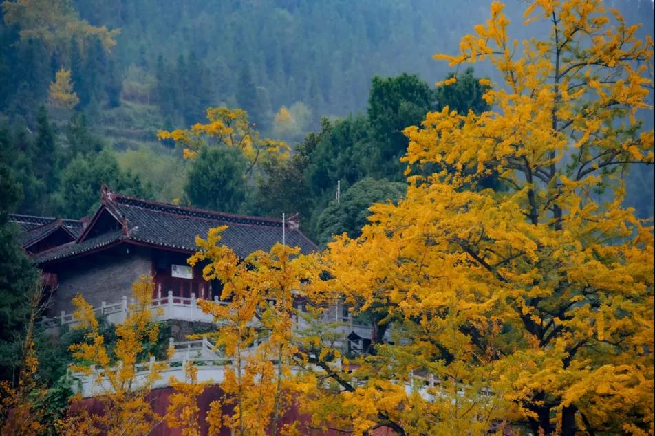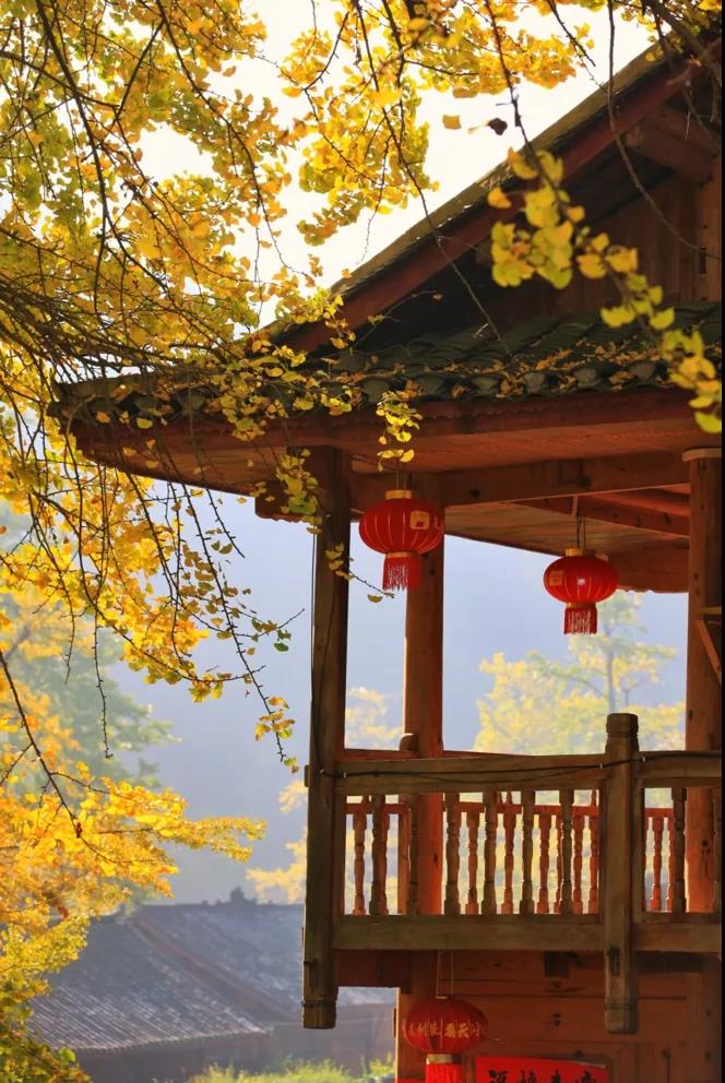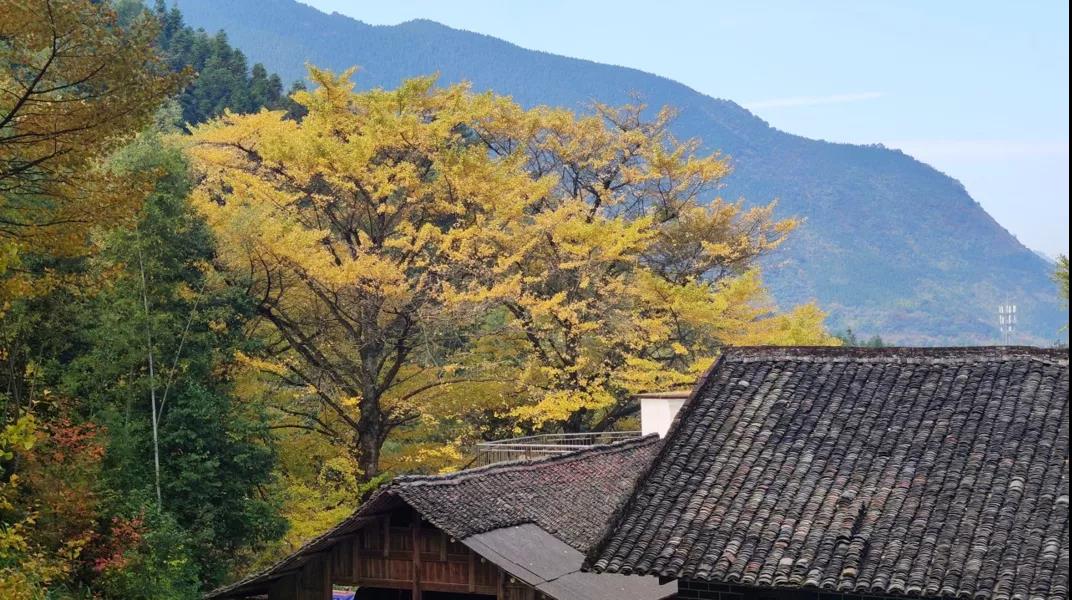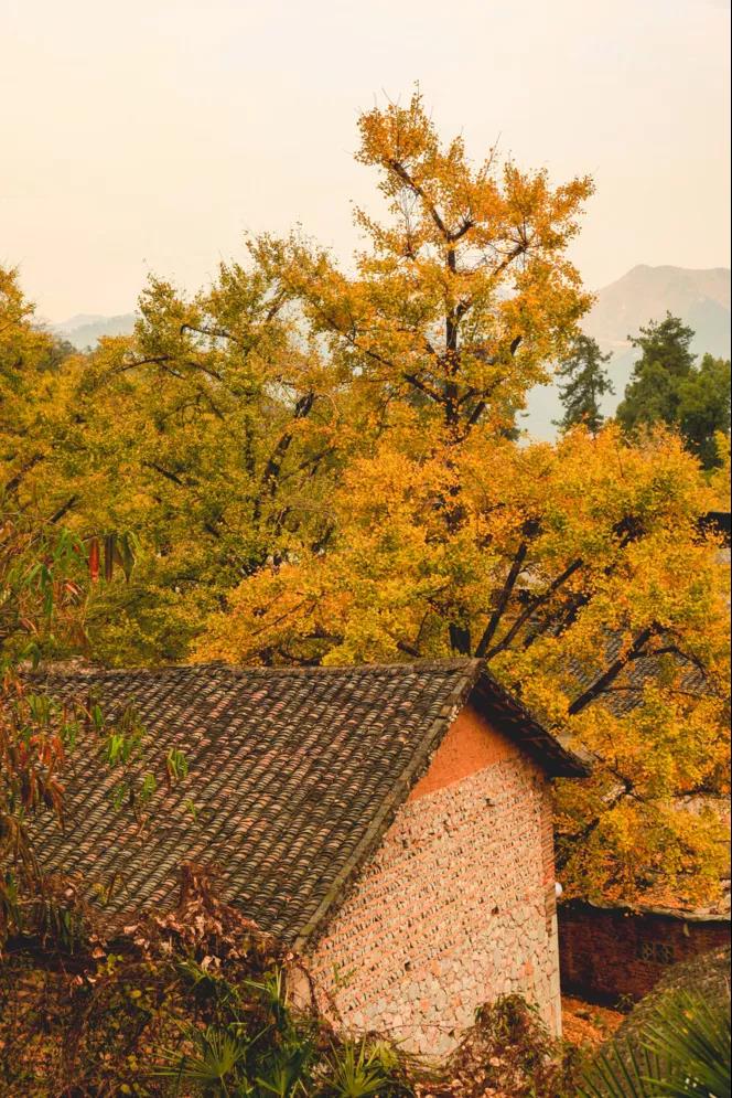 这里是天然静谧的生态屏障,小桥流水、古树参天、群山环绕,还有金黄的银杏挂满树枝与屋顶,堪称是一处古色古香的山中古村。