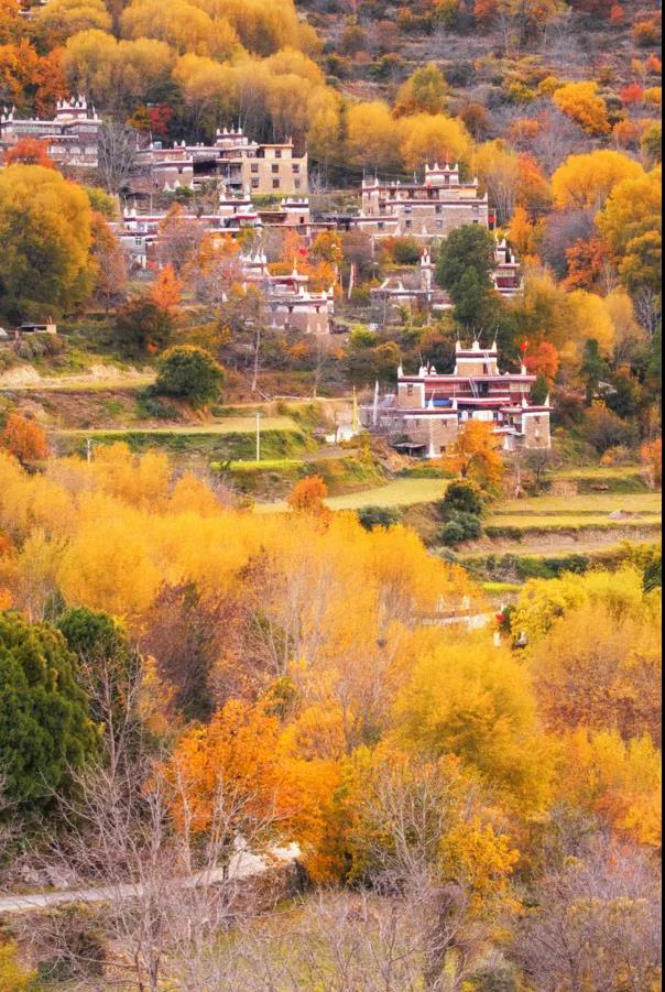 走进金秋的藏寨,几百幢独具一格的古石碉楼依山就势,搭配着棕红色的屋檐,错落有致地融于自然环境中,天人合一又别具风情。