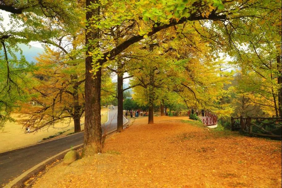 这里有300亩银杏林,3000多株的银杏树。在深秋之时,银杏树变成身着金黄铠甲的战士伫立着,满地的“黄金甲”是他们荣誉的象征。