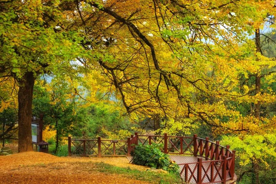 1500多株树银杏树,在金秋时分绚丽登场,最大的树龄在1500年以上,最小的也有300多年。