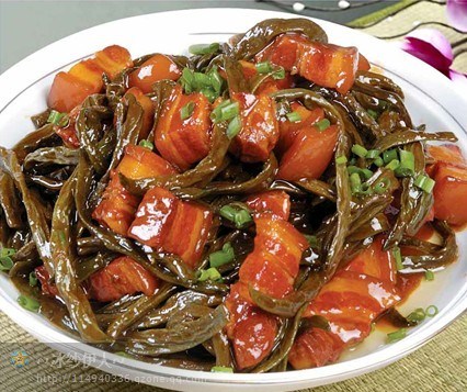 干豆角可以凉拌,热油一炝,配上盐、醋、辣椒面等作料拌均匀,在撒上一些白芝麻,那滋味酸辣爽口,配稀饭特好吃。当然用它来做红烧肉或者梅菜扣肉更是一绝,豆角吸收了肉汁之后,甚至比肉都香,很多人吃这道菜,就是冲着干豆角。