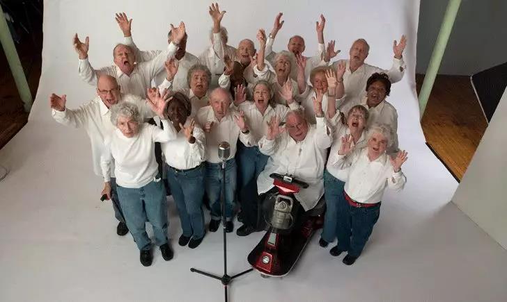 导演问他们为什么加入乐队?他们说:“唱歌的时候忘记这把摇摇欲坠的老骨头,膝盖、髋关节、肩膀还有手指的痛……”导演问:“为什么选择唱这么难的歌?”他们说:“我不知道会怎么样,但我想试着去扩展眼界。”