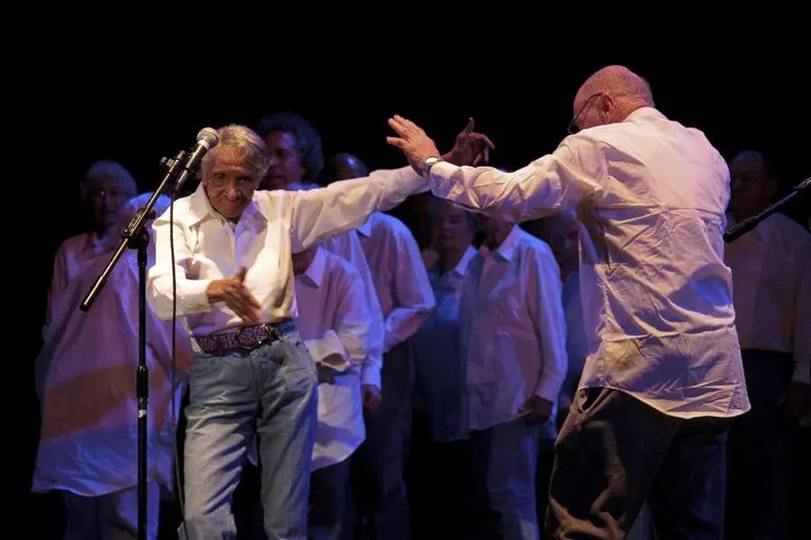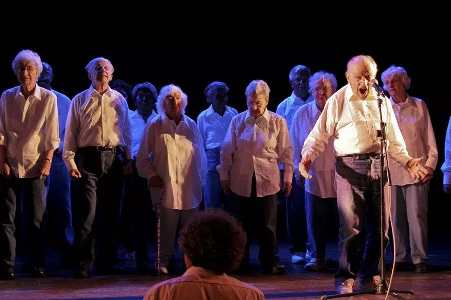 唱《I feel good》得边跳边唱,而主唱却是身受脊椎刺痛困扰的76岁老头史丹和83岁的曾曾祖母多拉。史丹唱到一半突然说:“我的背好痛!”但回到家里,他会躺着一遍遍练习。临上场,为把握好节奏,他们还会在剧场外再认真演练一遍。