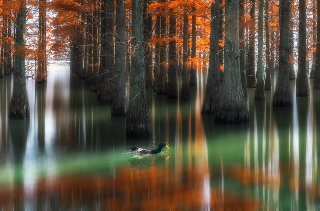 这是一处难得的自然佳境,不论是静谧的湖面,还是流动的小溪流,树影将斑斓色彩投影其间。