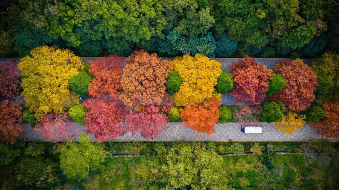 红叶黄叶飘满路,秋的颜料盒就在这里被彻底打翻。