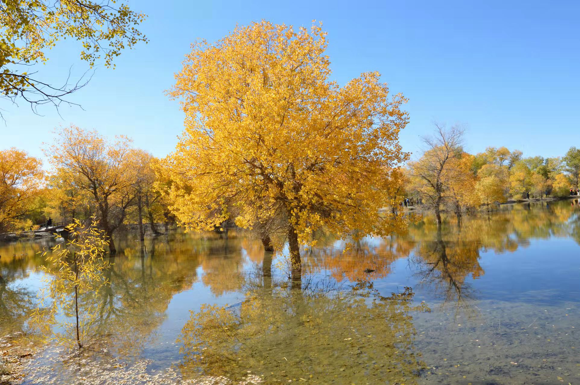 胡杨林树叶便由浓绿变得满目金黄,