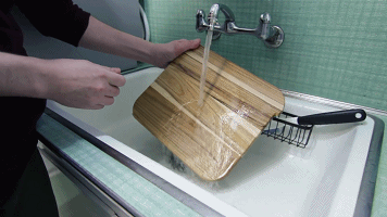 将砧板弄湿,均匀刷上洗洁精,放入微波炉中,加热一分钟。取出,简单冲洗即可,此时的砧板已经被充分消毒。