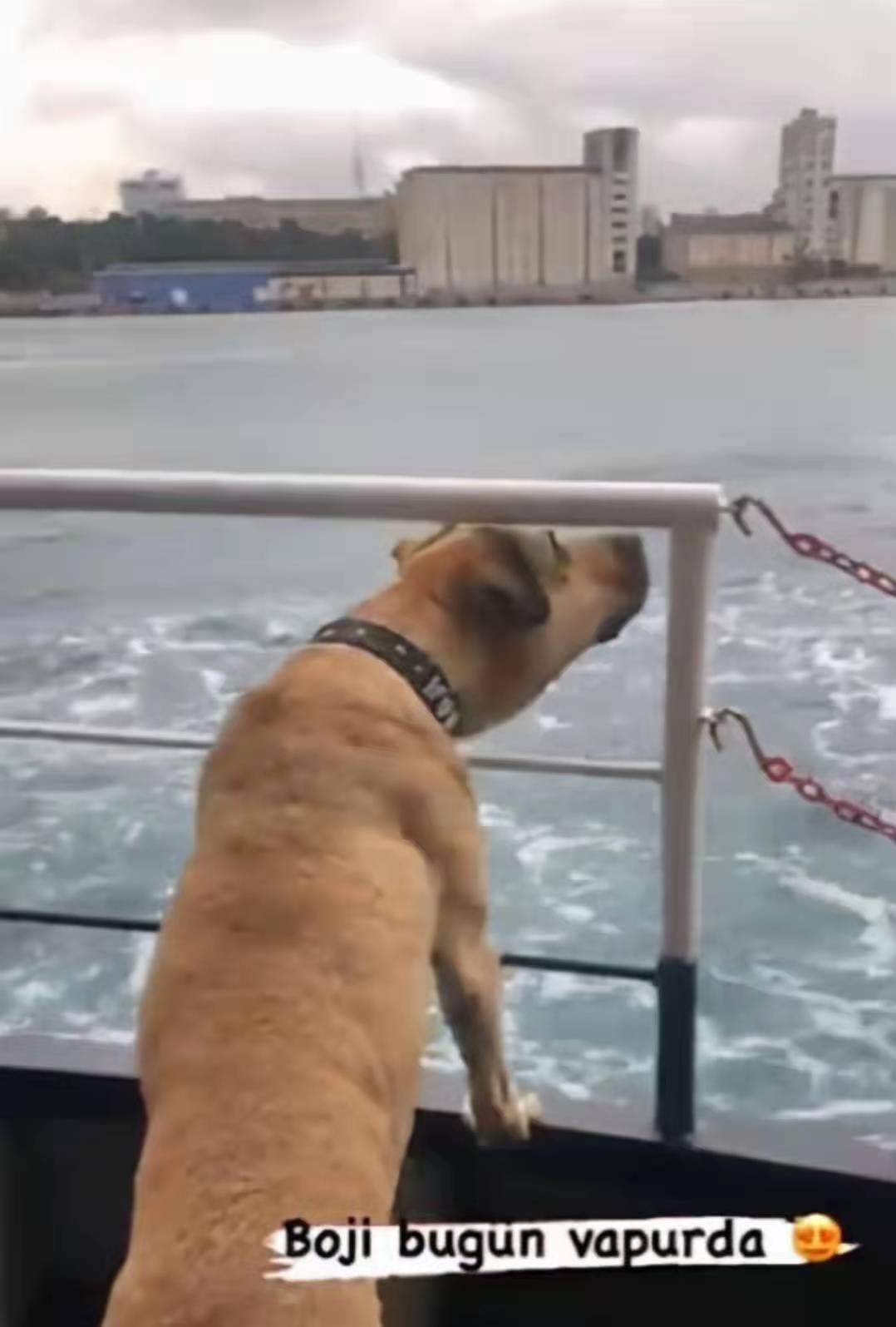 一艘客轮正在海上航行,船上的乘客们一边等着抵达目的地,一边把目光抛向船上一位悠闲的乘客——狗子博吉(Boji)。