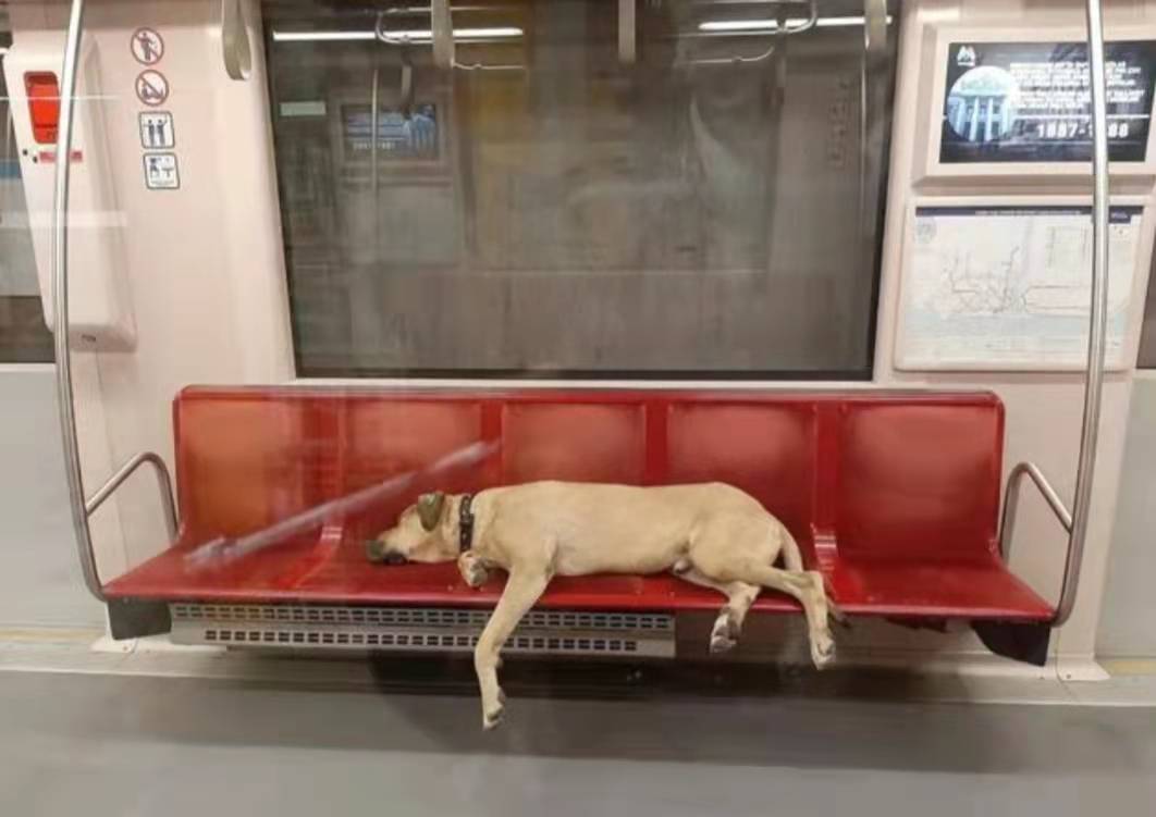 但对于当地大多数的上班族来说,在疲惫的通勤时间,看见这么一只乖巧懂事的大狗子,还是一件很治愈的事情。