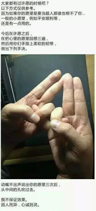 找丢丢那次,除了剪刀大法外,我还用过一个许愿手诀(对我来说有效率在70%~80%),是微博@李诣凡教的: