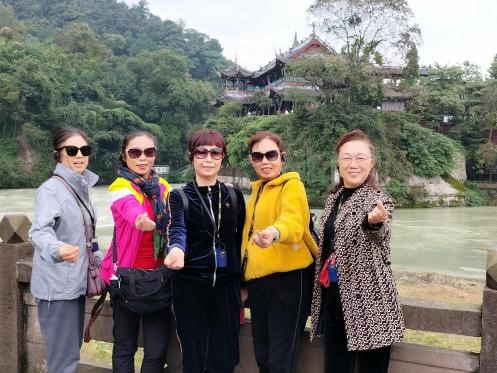 从熊猫馆出来,我们的大巴车直奔都江堰驶去。在大巴车上,小王导游说,我们要换一个地导,就是当地导游。地导,不是机器人,是个美女导游。她讲了许多,我们也问了很多。这种面对面的交流,的确很温馨,大巴车里的气氛也活跃起来了。