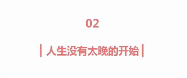 对有些人来说,永远没有时间、永远都来不及做想做的事情,而对另外一些人而言,人生却充满了机会。因为他们相信,人生没有太晚的开始,只要肯去做,总会有收获。