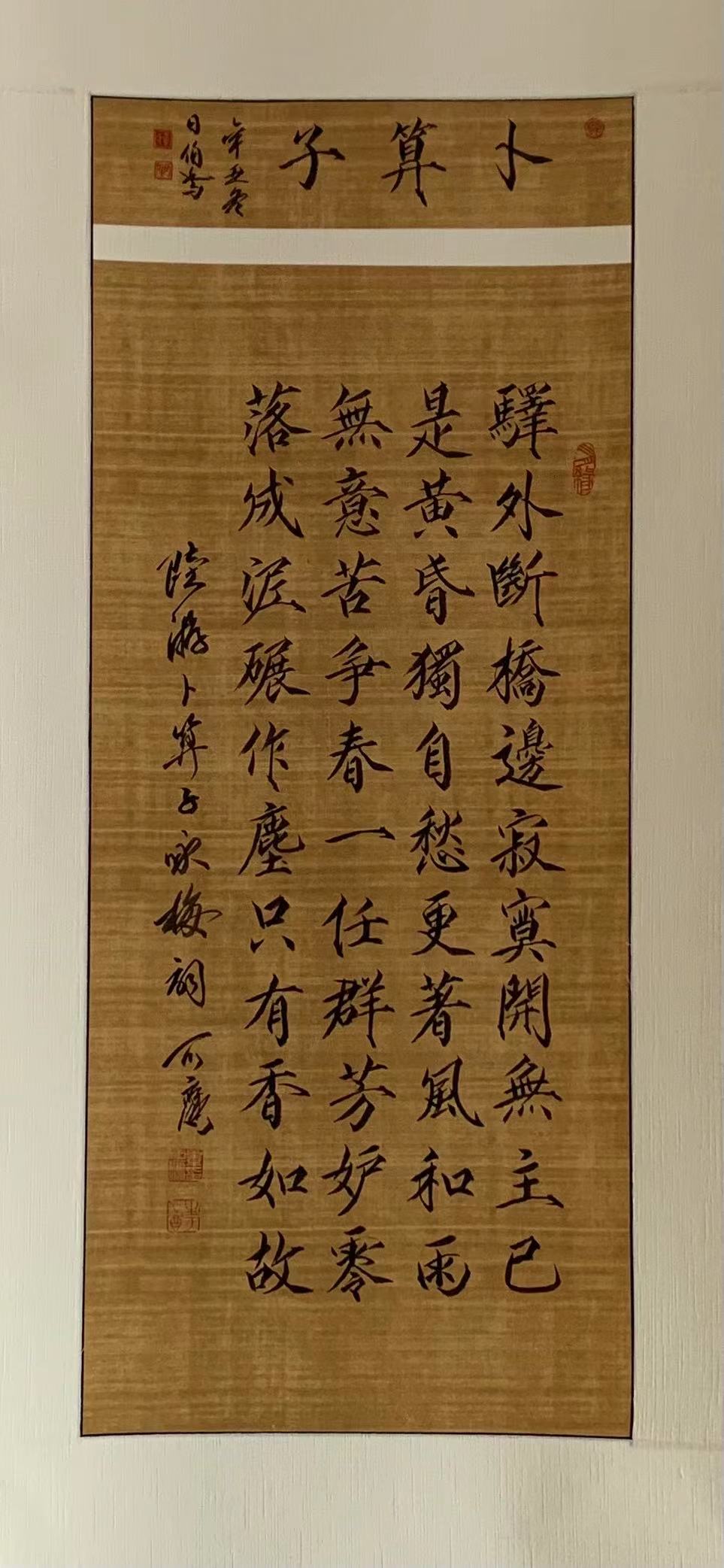 在麻面宣纸上书写宋 . 李清照《满庭芳·残梅》,瘦金体95个字,顺利。