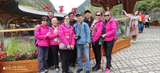 说说讲讲,我们这就来到了九寨沟。大家扫过安康码,穿过大门,换上了当地的旅游观光车。在旅游观光车上,导游又换成了地导。