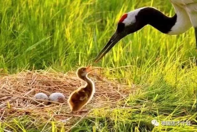 而她单独饲养的幼鹤,