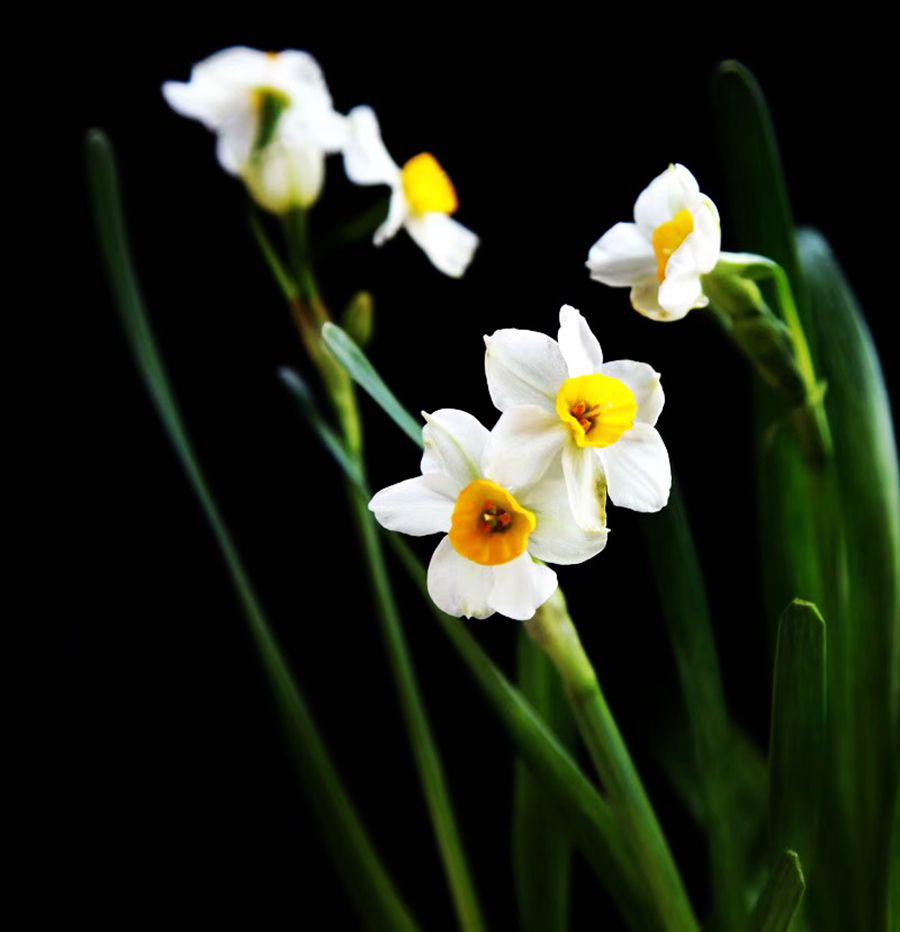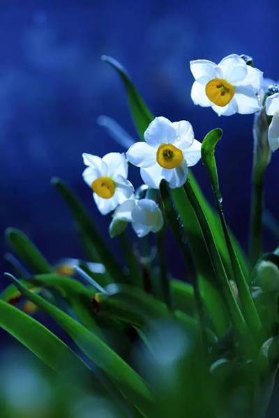 今天,水仙又重现在我脑海,我仿佛又看到了水仙的芳姿,又闻到了她淡雅的清香。急忙刷抖音找到漳州水仙专卖,下单,买了一款质地上好的水仙,三天既收货。洗涮干净盆子,浇水栽种,十天不到,水仙就枝繁叶茂了,第十二天,竟长出了花苞。为什么花开提前了呢?究其原因,是房间太热了,过早的催开了花朵。等到第十五天,水仙就陆续开了花。我每天都观察水仙,并乐此不疲的换水,擦拭叶片,修剪枯叶。