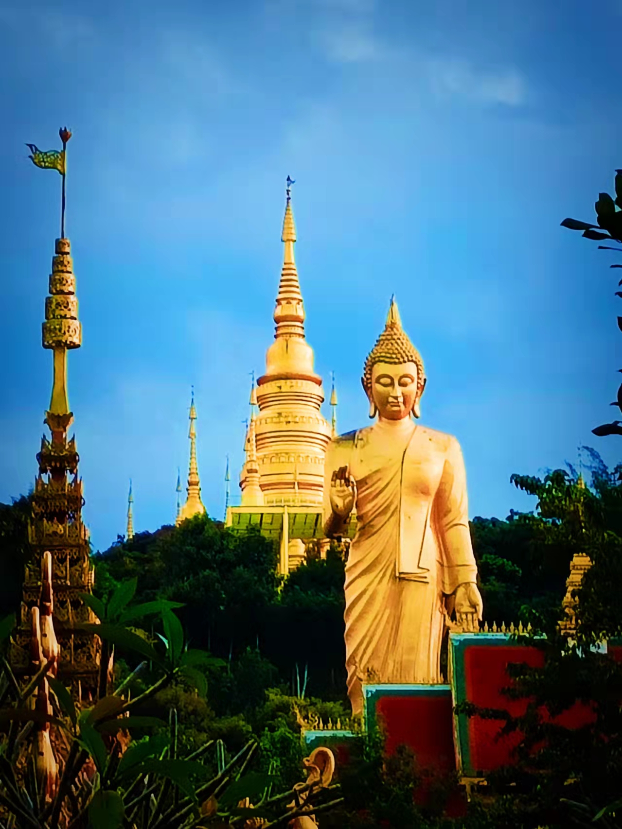 勐泐大佛寺,位于云南省西双版纳傣族自治州州府景洪市城郊,按照国家AAAA级景区标准打造。勐泐大佛寺是在古代傣王朝的皇家寺院“景飘佛寺”的原址上恢复重建的,“景飘佛寺”是傣族历史上一位名叫拨龙的傣王为纪念病故的王妃南纱维扁而修建。