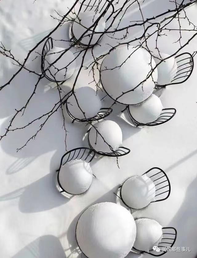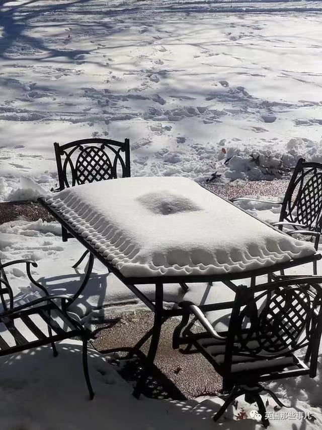 大雪落在餐桌上,变成了高低起伏的艺术品。