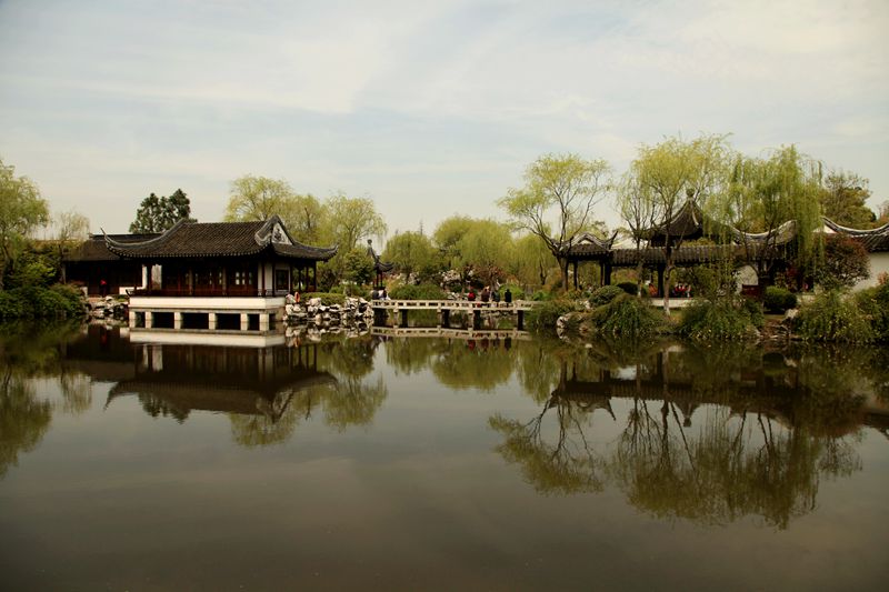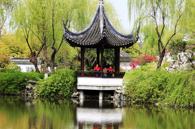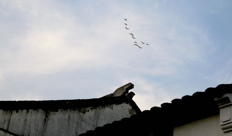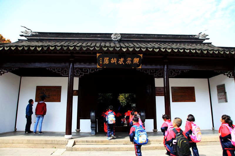 我在顾炎武的故居呆的时间最长,这是一个大户人家,亭台楼榭,雕梁画栋,小桥流水,古树参天。这里分四个区域,故居老屋、亭林祠堂和墓园及顾园,我依次参观。这里景色清幽,越往里走,越有大家气象。这天天气也好的出奇,蓝天白云,光影柔柔。小桥,流水,人家,处处飘逸着文化气息。幽幽绵绵的丝竹声传入耳鼓,听说江南丝竹的创始人——陶渊明的第九代裔孙陶岘就诞生于此。