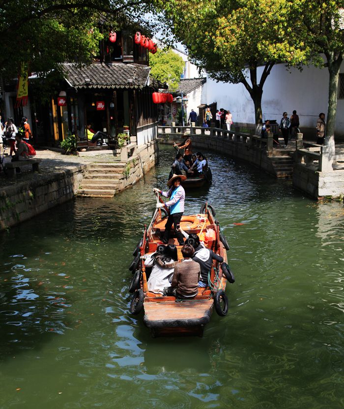 江南六大古镇中,同里则是我最后去的一个古镇。那年(2015年)的春天,我再次来到苏州,为了弥补遗憾,我去了同里古镇。与我想象的一样,同里人满为患,小船在河中穿棱如下饺子般沸腾。这天恰逢周末,人多的没了边,堤岸上到处都是攒动的人头。如此喧嚣,比周庄有过之而无不及。