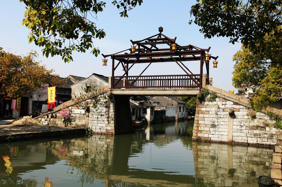 与其他水乡不同的是,同里古镇是由49座桥连接在一起的,这些桥大多建于宋代。最著名的有南宋的思本桥、富观桥等。我看见桥下有个阿庆嫂茶楼,还有一座林家铺子,这些场景让我记起看过的老电影。桥之于古镇,是水乡的命脉。每座桥都承载着一段历史,每段历史都有着一个故事。这些桥古朴盎然,弯成拱月横在两岸,岁月从它脚下流过,千年沧桑也没让它改变。它依然延续着承载的使命,守着古镇不离不弃。