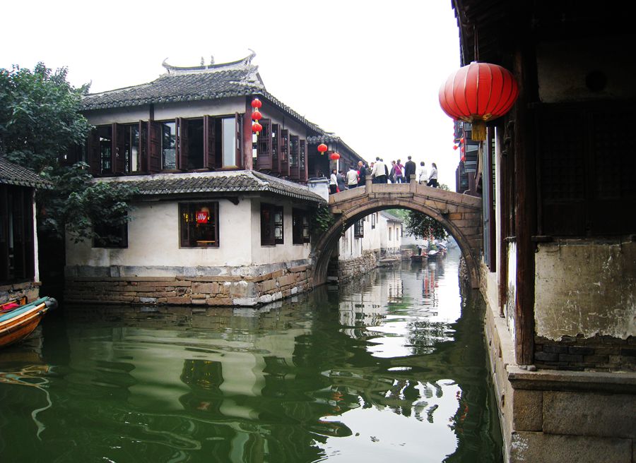 江南六大古镇中,周庄是我最早去的,也是我只字未记录的古镇。那是2008年的秋天,我去江南看女儿。为了排遣悲伤,我去了苏州。在苏州我想起女儿曾去过周庄,遂报了个旅游团也去周庄看看。这是我第一次见到江南水乡景象。那个时候,我的心情很糟糕,看山山不明,看水水不清,一切景物在我眼里都是灰蒙蒙的,犹如我浑浑噩噩的心境。